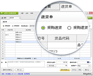 采購進(jìn)貨、退貨,分倉管理,向雙重身份客戶的購進(jìn),現(xiàn)付、賒賬、整單抹零折扣均可處理,滿足日常采購業(yè)務(wù)需求;提供進(jìn)貨單查詢、進(jìn)貨統(tǒng)計報告,全面的采購數(shù)據(jù)分析。